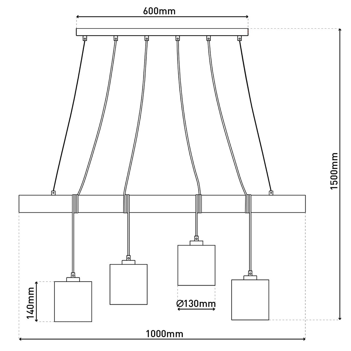 De 4-lichts hanglamp “Malta” heeft vier lampenkapjes die stijlvol aan een houten balk hangen. Deze combinatie van modern design en natuurlijke materialen zorgt voor een warme en uitnodigende uitstraling.