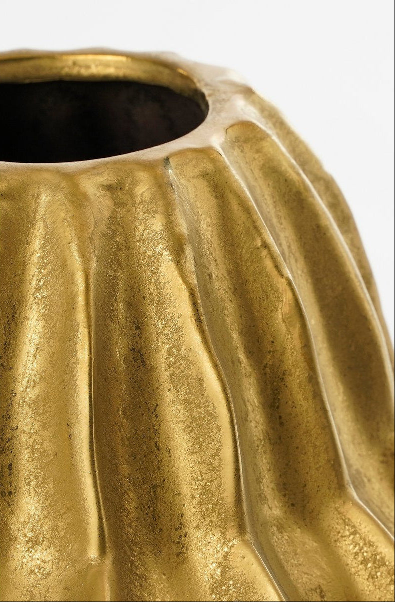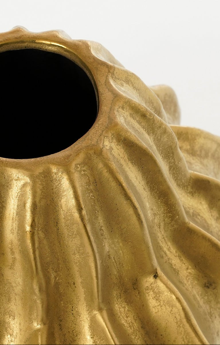 Deze handgemaakte vaas van stevig keramiek is een echte eyecatcher, met of zonder bloemen. De gouden kleur en het geribbelde design geven een stijlvolle, opvallende uitstraling. De Altea collectie bestaat uit meerdere vazen in verschillende kleuren en formaten. Leuk om te combineren voor speels geheel!