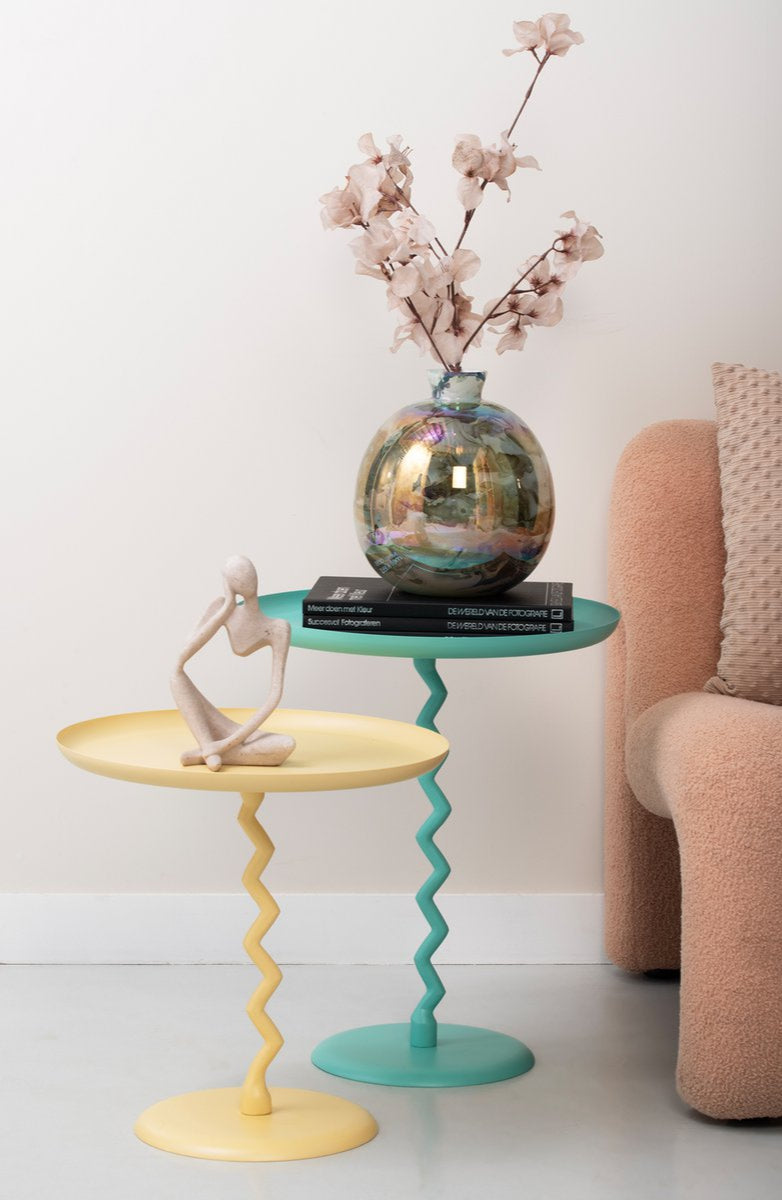 Breng een moderne touch in uw interieur met deze stijlvolle bijzettafel. Het speelse ontwerp maakt het een echte blikvanger. Deze tafel is niet alleen praktisch, maar ook perfect om te combineren met verschillende woonstijlen. Ideaal voor het creëren van een persoonlijke en vrolijke sfeer in elke ruimte.