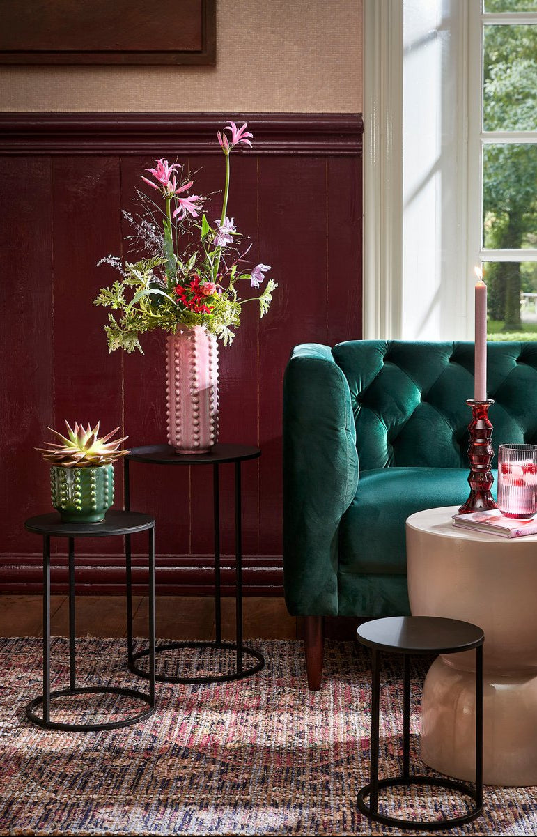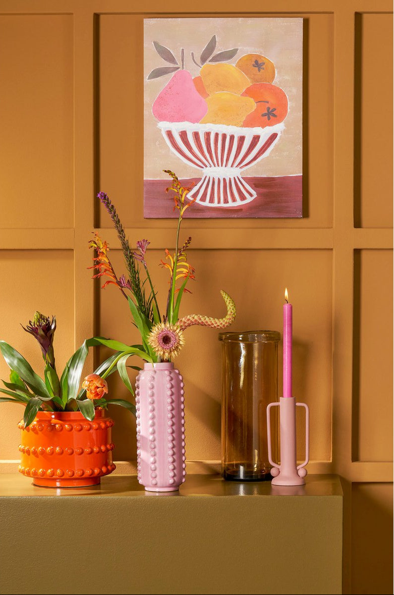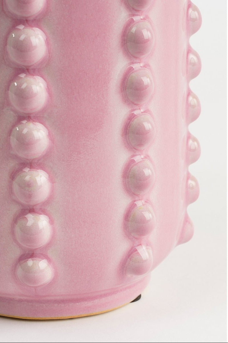 Deze Boaz vaas is een vrolijke en tegelijk een stijlvolle toevoeging aan ieder interieur. De roze vaas is gemaakt van stevig keramiek en valt op door de gebobbelde structuur aan de zijkant. De vaas is 100% handgemaakt en hierdoor uniek, een echte blikvanger! Deze vaas is ideaal voor bloemen, siertakken of pluimen. Ook leuk om te combineren met meerdere gekleurde vazen of potten uit de Boaz collectie.