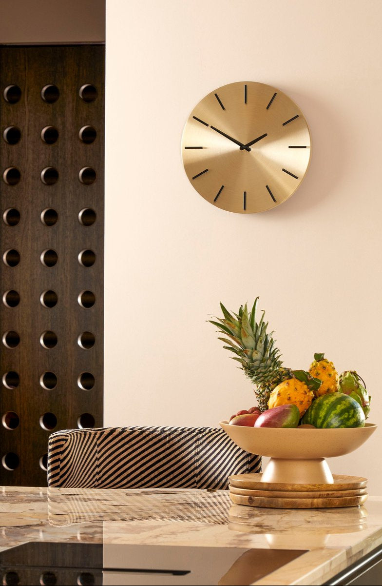 Laat elke seconde tellen met een klok die net zo stijlvol is als jij! De Brixen wandklok is gemaakt van aluminium en heeft een ronde vorm. De gouden achtergrond staat mooi in contrast met de zwarte wijzers. Modern met een chique touch! Door het strakke design past de klok daarnaast in elk interieur. Verder heeft de klok een makkelijk ophangsysteem waardoor hij makkelijk aan de muur te monteren is. Kies voor dit minimalistische design, met maximale impact!