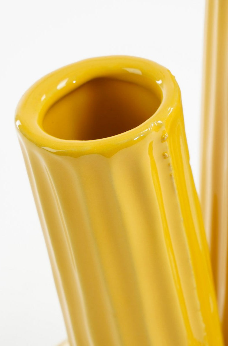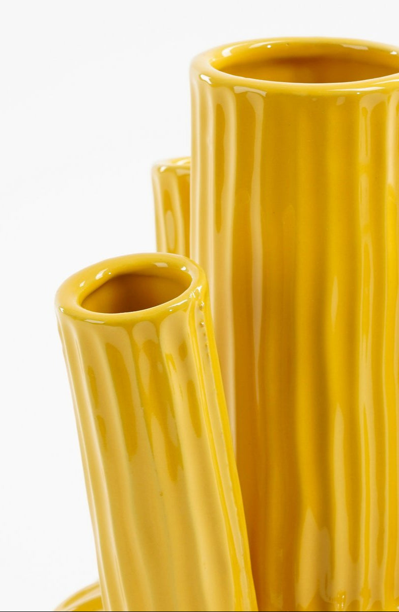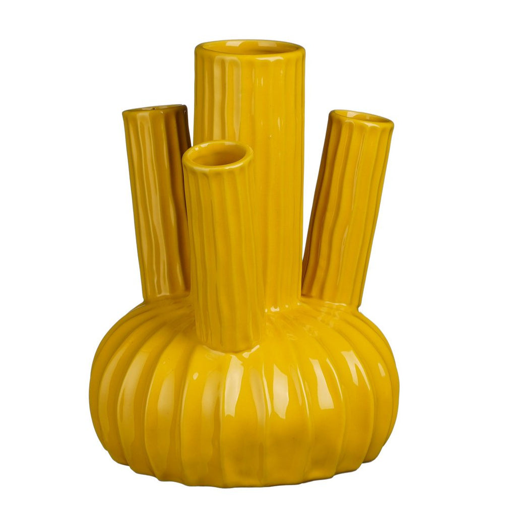 Deze Felipe tulpenvaas mag niet ontbreken wanneer tulpen je favoriet zijn. De tulpenvaas is gemaakt van stevig keramiek en heeft een vrolijke gele kleur. Daarnaast is de vaas uniek omdat deze 100% handgemaakt is. Dankzij de vormgeving en de verschillende tuitjes is deze vaas ideaal om tulpen of snijbloemen in te schikken. Zelfs zonder tulpen is deze vaas een echte eyecatcher!