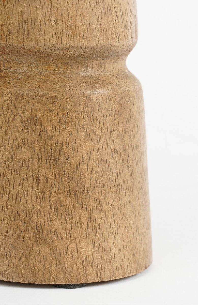 Creëer een warme sfeer in huis met de Nino kandelaar. Deze kandelaar is gemaakt van mangohout, wat zorgt voor een natuurlijke uitstraling en een stijlvolle toevoeging aan elk interieur. Het rustieke design maakt hem perfect voor op tafel of in de vensterbank. Combineer met andere kaarsenhouders voor een leuk geheel. Ook verkrijgbaar in een kleiner formaat.