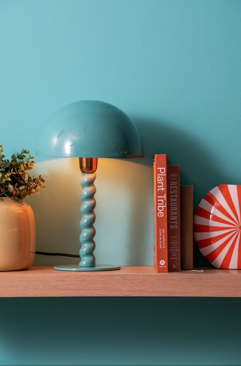 Deze tafellamp is een echte blikvanger. De speels gedraaide voet geeft het ontwerp een speelse touch. Verkrijgbaar in meerdere trendy kleuren, waardoor de lamp perfect past binnen uiteenlopende interieurstijlen – van strak en modern tot creatief en speels.